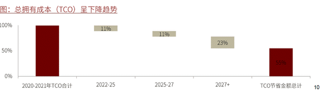 一个看似简单的替代行为,能创造出巨大的经济效益。中金公司认为,自动驾驶卡车的经济性要明显优于传统燃油重卡,主要体现在三个方面:一是增加卡车运行时间,二是降低司机成本,三是提高燃油经济性。根据其测算,自动驾驶卡车可最终让成本下降45%。